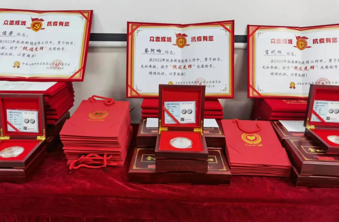 表彰抗疫先鋒 同樣,在三月份出現的新冠疫情里,在公司董事會以及黨群工作部的帶領下,公司上下并肩作戰,齊心守護,廣大黨員干部及志愿者積極響應政府號召,迅速反應,第一時間奔赴“抗疫”前線,以實際行動詮釋了“奉獻、友愛、互助、進步”的志愿精神,取得了抗擊本輪疫情的階段性勝利。今天,特隆重舉行抗擊新冠肺炎疫情表彰會,向作出貢獻的黨員和職工授予“抗疫先鋒”榮譽稱號,弘揚偉大抗疫志愿精神,致以崇高敬意,表達衷心感謝。 面對此次疫情,華寶集團的黨員表現出了高度的責任感和使命感,挺身而出,成為群眾的“主心骨”和先鋒軍,用實際行動當好標桿,發揮先鋒作用。他們不忘黨員的初心本色,在黨旗引領下,團結群眾,眾志成城,勇敢地投入到疫情防控前線,堅決捍衛人民群眾的生命財產安全,用實際行動彰顯黨員的責任和擔當。此次受到表彰的一共有12名黨員干部(含2名涉外黨員),分別為師體偉、余紅慶、李樹海、虞先禮、王碧花、文俊榮、周春燕、蔡文明、陳國華、吳秋媛、張太毛、王桂榕,華寶集團黨支部書記、工會主席師體偉向他們頒發了“抗疫先鋒”榮譽證書和特別定制的紀念章。