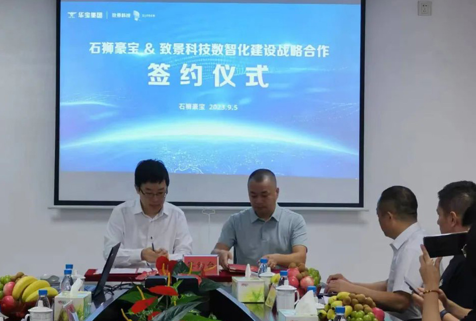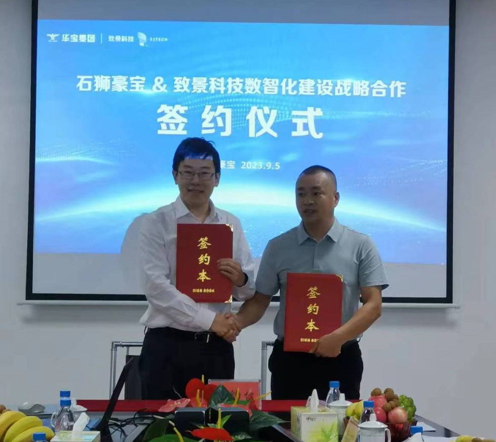 工業智能化 在紡織行業數字化、智能化變革浪潮的時代背景下,為了更好地找到企業數字化時代的管理運營升級路徑,解決企業在貿易營銷、生產管控、工藝研發、生產計劃、業務協同等多方面的業務需求與難題,2023年9月5日,華寶集團旗下石獅豪寶染織有限公司與上海致景信息科技有限公司簽署戰略合作協議,雙方將圍繞數字化、智能化應用重塑石獅豪寶生產運營的核心環節,打造高效、 互聯、共享、敏捷的印染行業數智化標桿工廠。 華寶集團總經理劉德芳、上海致景科技高級產品總監龔斯偉等雙方公司領導出席了簽約儀式,石獅市工業信息化和科技局副局長巫菲祥、石獅染整公會秘書長葉銀容也出席此次會議,華寶集團黨支部書記師體偉主持了會議。
